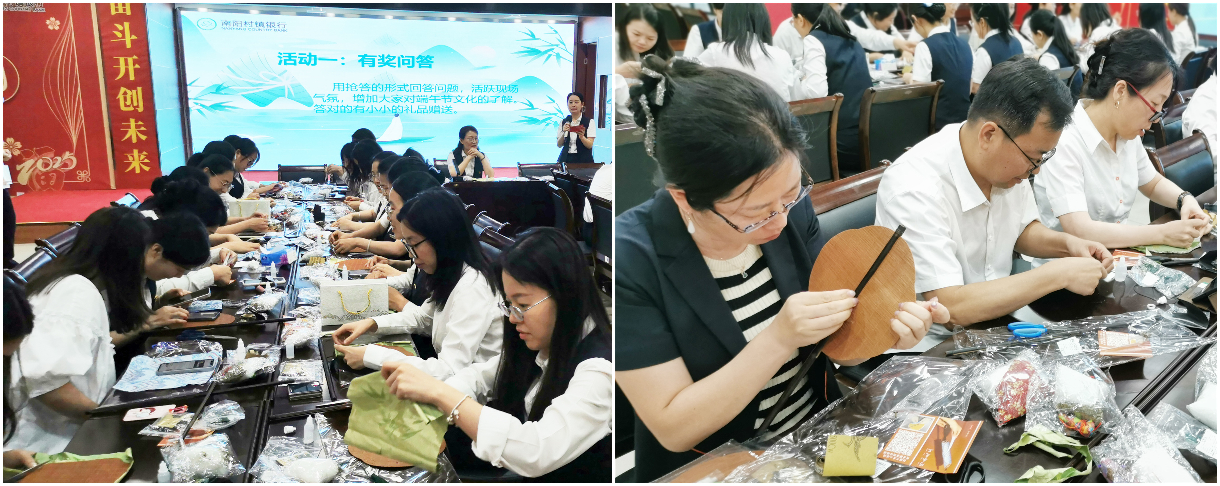活动开始前,杨菊代表行党委和工会向全行员工及家人送上节日的问候和诚挚的祝福。活动共设置有奖问答与手工实践两大环节。在端午知识问答环节,参与者们聚精会神聆听问题,积极举手踊跃参与,抢答发言与热烈掌声相互交织,将现场气氛不断推向高潮;在香囊与非遗腰扇制作环节,大家认真观看制作教程,探讨技艺细节,相互帮扶协作,纷纷制作出专属的手工艺品,现场欢声笑语不断,处处洋溢着温馨愉悦的氛围。大家纷纷表示,这种寓教于乐的活动方式,加深了对端午节文化内涵的理解,切身感受到了传统文化的独特魅力,同时也进一步拉近了同事间的距离,增进了相互之间的了解。